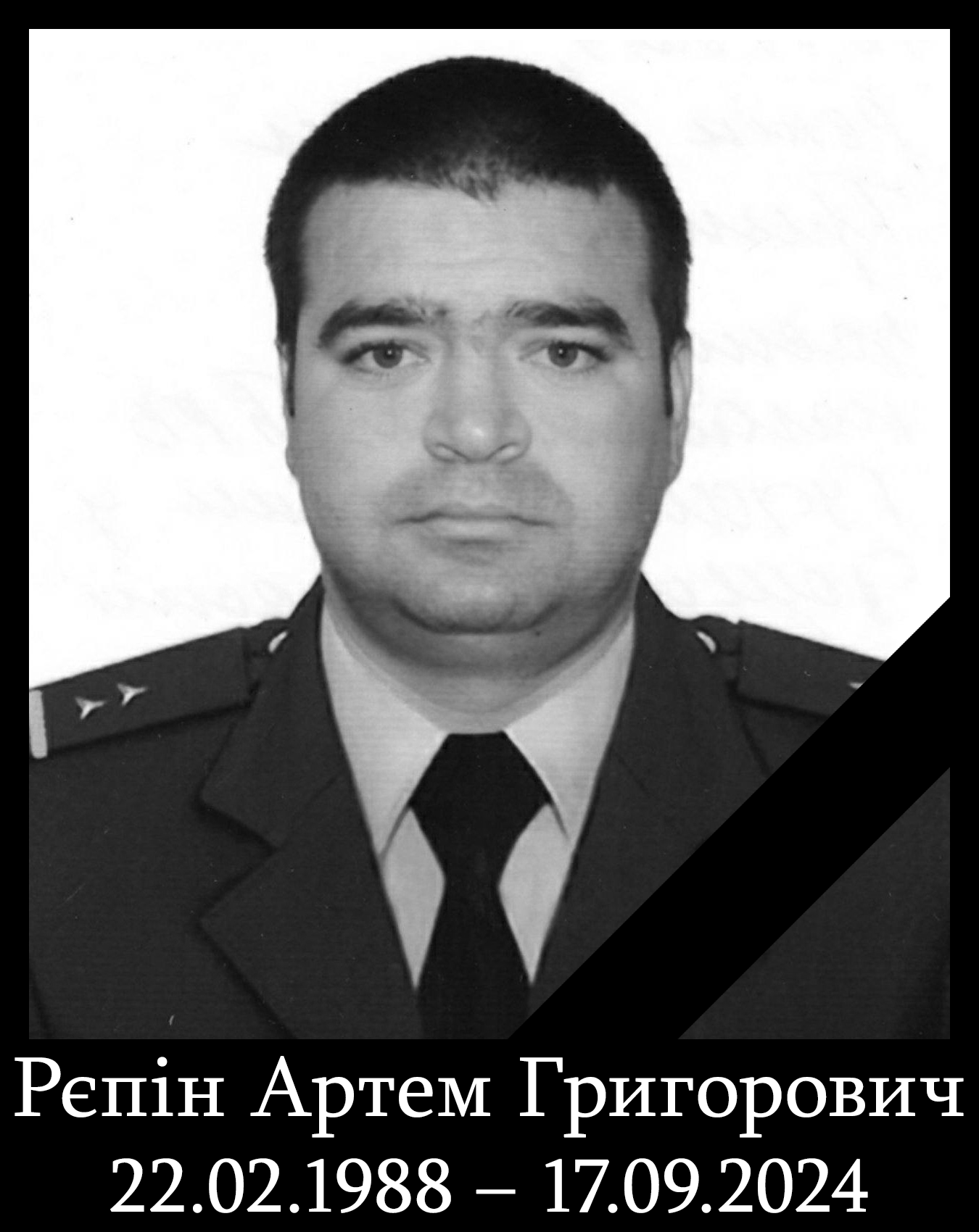 РЄПІНАртем ГригоровичДата народження/смерті: 22.02.1988 – 17.09.2024 Місце народження: м. Мирноград Звання: головний майстер-сержант, командир відділення 83 державної пожежно-рятувальної частини 9 пожежно-рятувального загону Головного управління ДСНС України в Донецькій області Місце загибелі: під час гасіння пожежі у с. Рівне Покровського району отримав смертельне поранення через артелерійськоий обстріл з боку рф. Місце та дата поховання: с. Одрадне, Волноваський р-н, Донецька обл. |